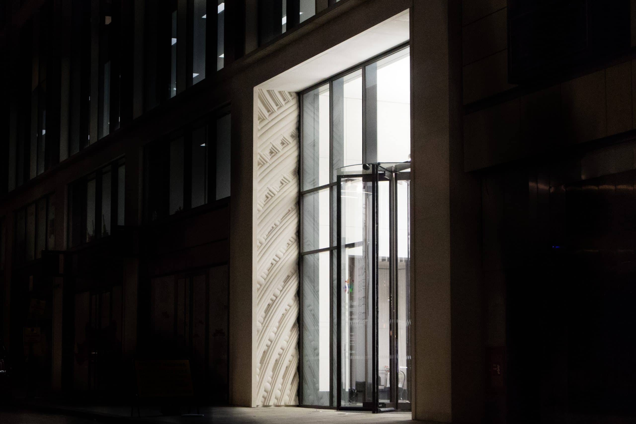 Commissioned by Great Portland Estates to design an artistic intervention to the lower ground floor façade to the entrance of a new building on Wells Street, London.