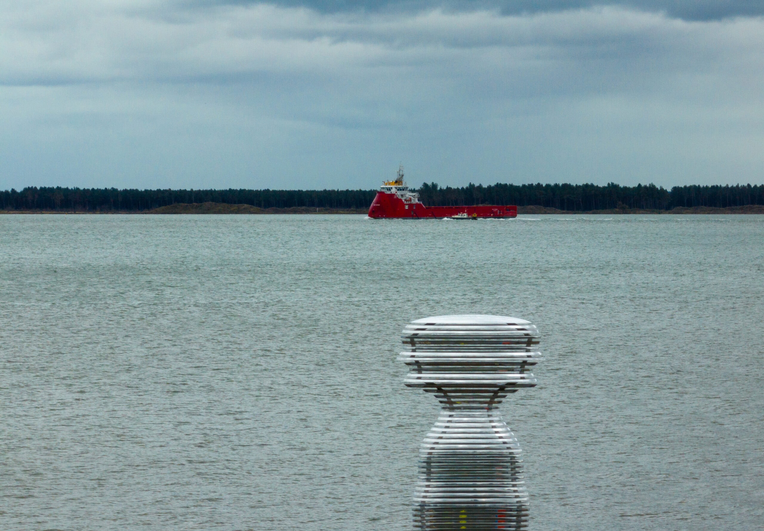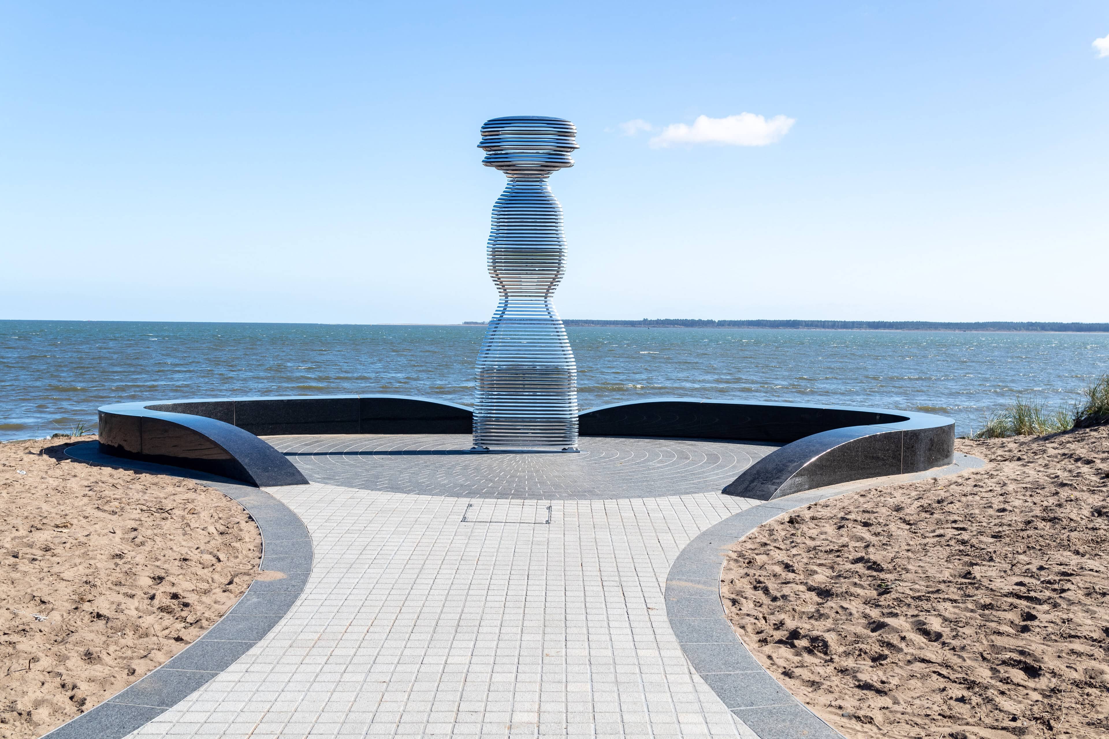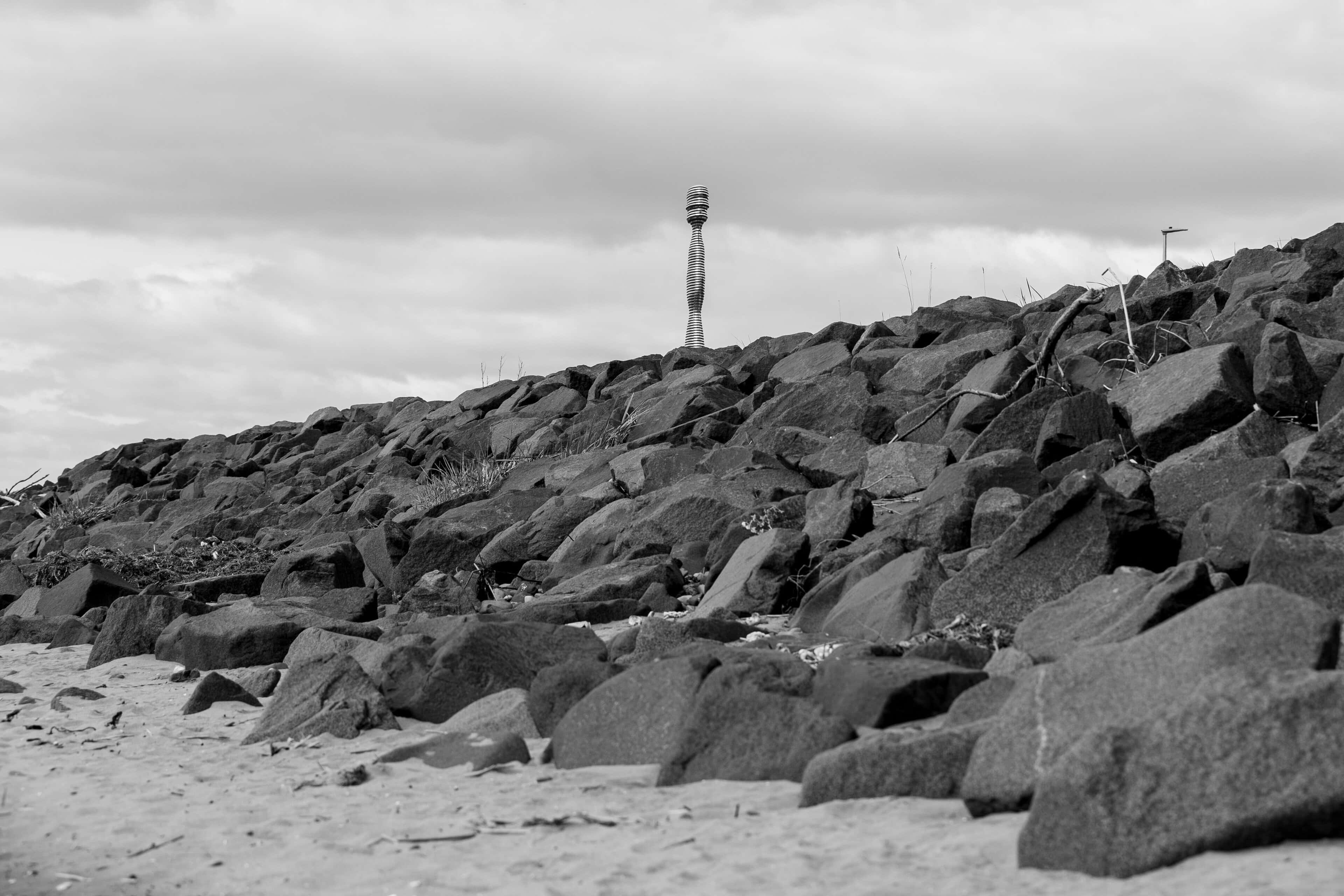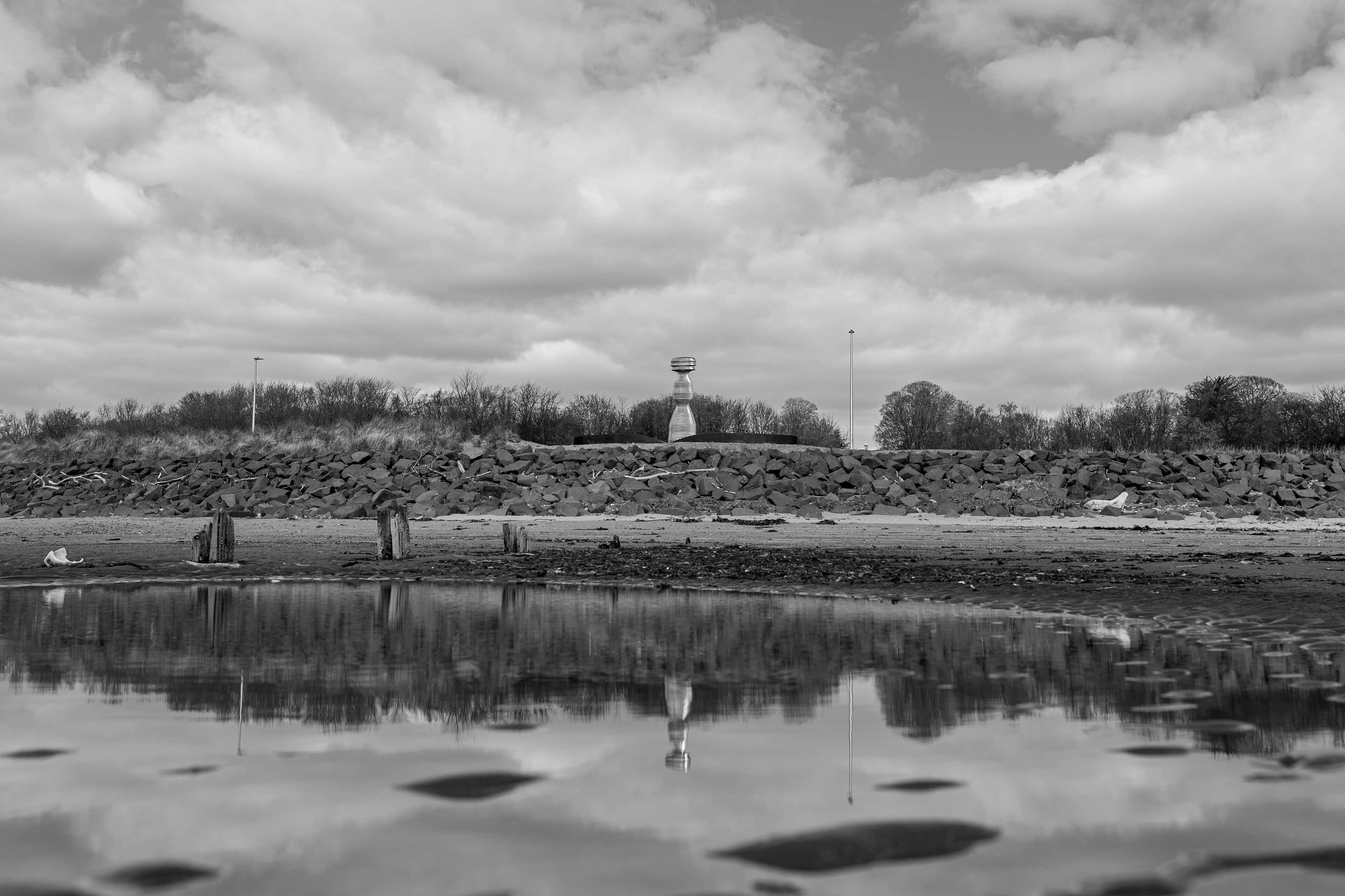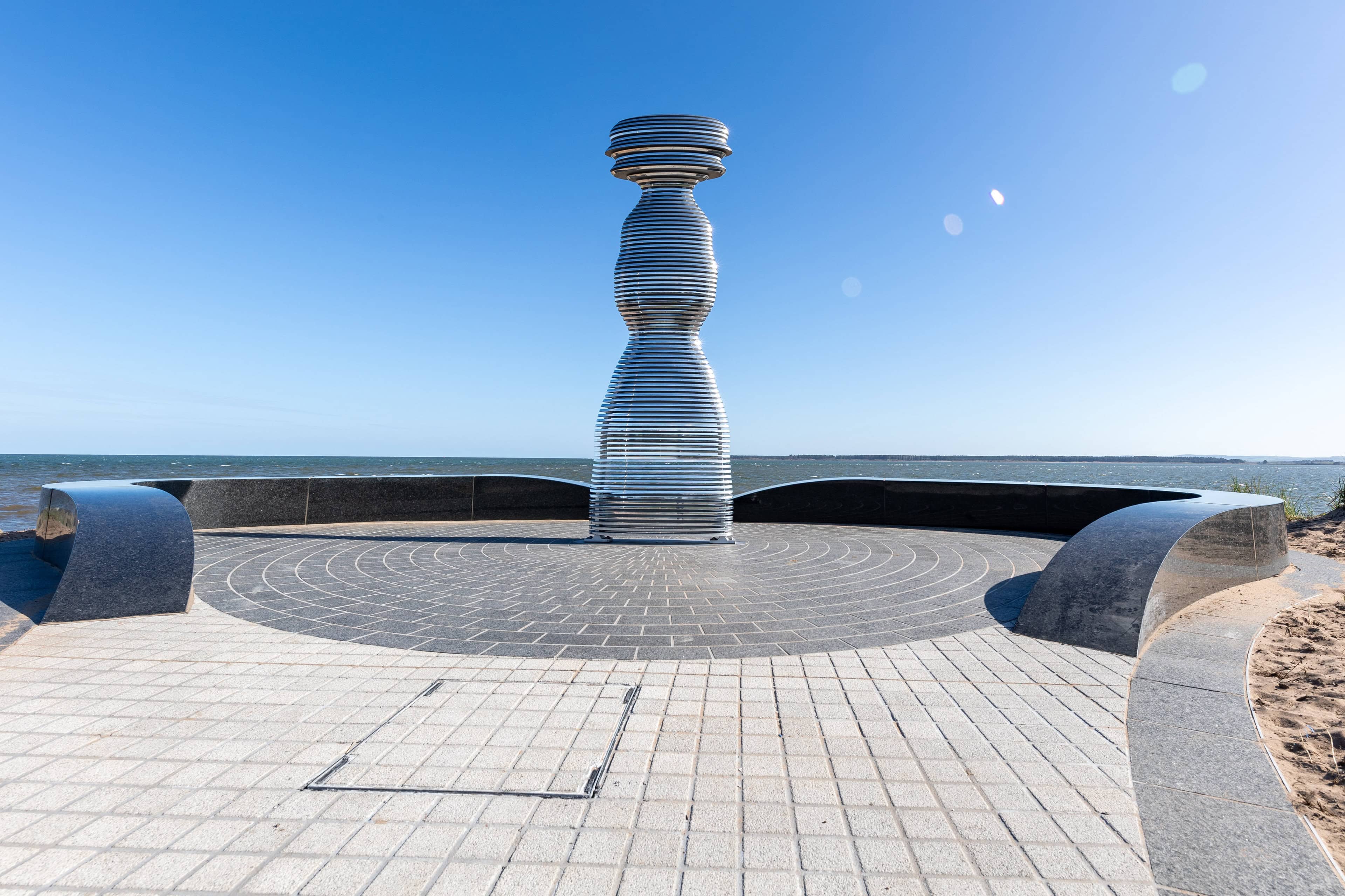 Situated on the banks of the River Tay—Scotland’s longest river—Tay Haze stands just under four meters tall and is accessible via a newly developed active travel route stretching from Broughty Ferry to Monifieth. Set against the vast expanse of the River Tay, the sculpture’s specially chosen location sits at a natural outcrop that extends into the river, creating a beacon-like presence reminiscent of the lighthouses visible in the distance.